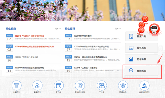 根据我校2026年春季招生章程规定,结合考生录取专业网上信息登记情况及候补录取资格确认情况,我校春季招生各专业(类)候补录取转预录取资格情况查询已开通(开通时间为3月7日17时—3月8日16时)),请考生以高考报名号、身份证后六位登录我校招生网“查询系统”进行查询。